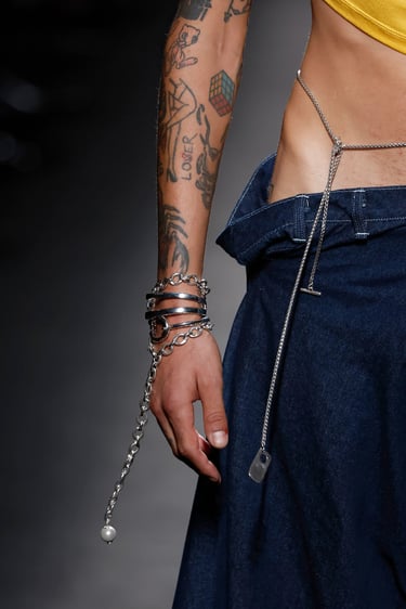 Estas técnicas —nudos, drapeados, arrugas, rotos, espaldas abiertas— intervienen de modo experimental en la forma, pero están calibradas para conservar usabilidad y coherencia con el ADN urbano de la marca.