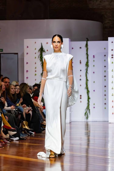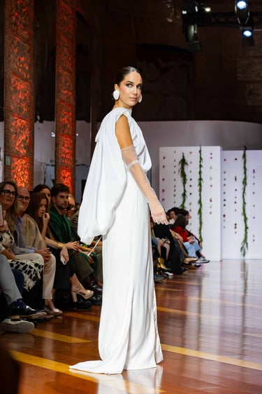 La puesta en escena en la Real Fábrica de Tapices, templo de historia e inspiración, resultó el escenario idóneo para que esta propuesta cobrara dimensión. Con una iluminación cálida que resaltó tejido, bordado y volumen, el público –editores, estilistas, boutiques internacionales– pudo palpar la madurez creativa que atraviesa al diseñador. El aplauso prolongado confirmó que la moda nupcial, cuando se entiende como oficio y emoción, sigue estando en primera fila.