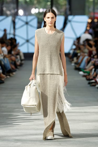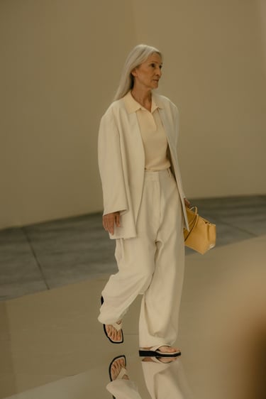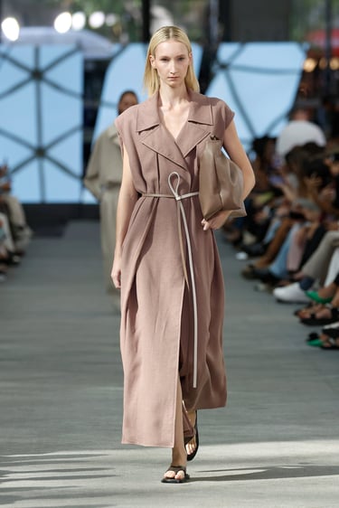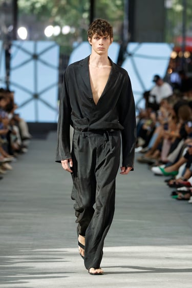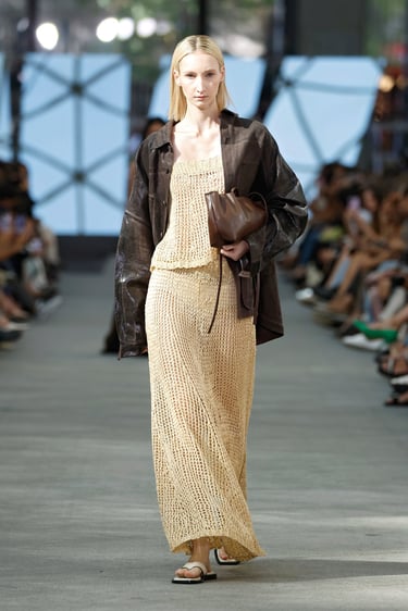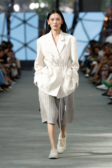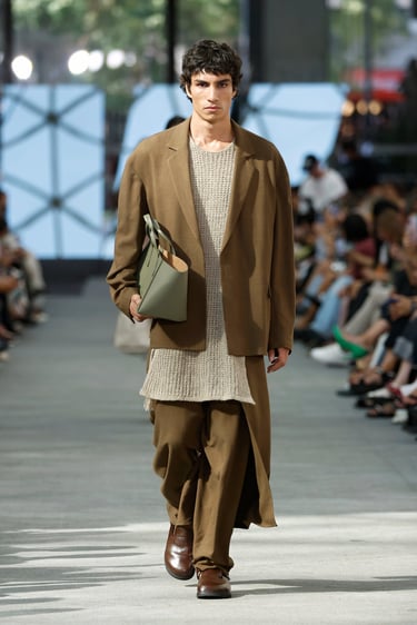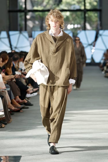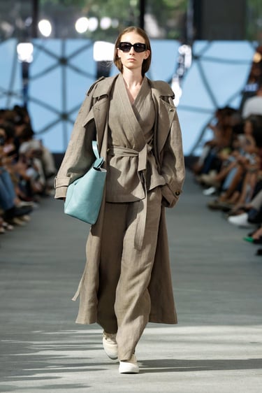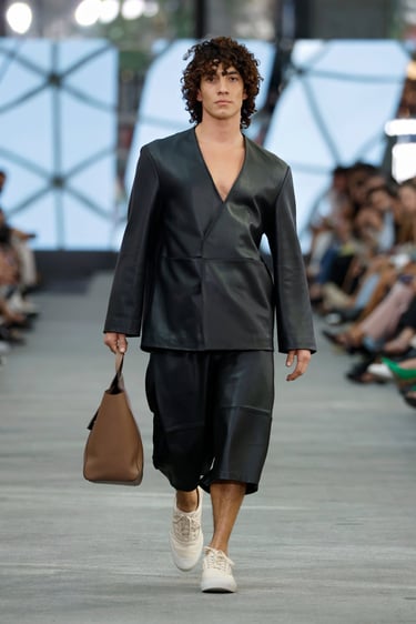 Los tejidos, fieles al legado de la casa, reivindican el lino como insignia. “El lino es nuestro, es parte del ADN Adolfo Domínguez”, afirma Tiziana Domínguez, directora creativa. A ello se suman algodones, pieles naturales y cupro, reafirmando una filosofía que desde hace décadas defiende la autenticidad y la belleza de la imperfección, condensada en su célebre lema: La arruga es bella.