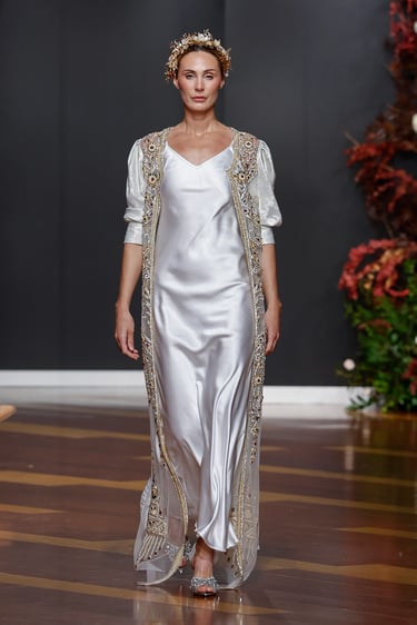 “Bravas y Virtuosas” no es solo una colección; es una declaración de intenciones. Cada diseño rinde homenaje a aquellos hombres y mujeres que eligen el bien en medio de la adversidad, que encuentran en la constancia y el esfuerzo una forma de elegancia silenciosa. En este sentido, la propuesta conecta con una novia contemporánea que no solo busca belleza, sino también identidad y significado en cada puntada.
