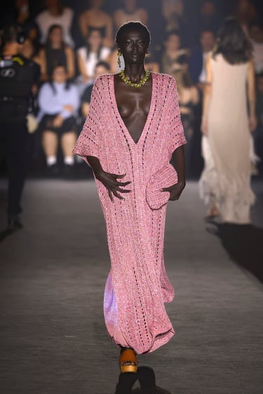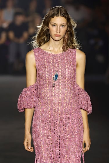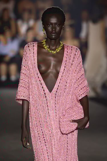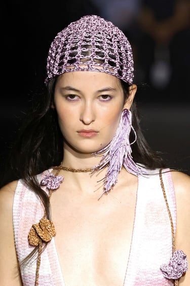 Las técnicas incluyen tramas abiertas, calados, crochet, macramé y bordados hechos a mano, fusionando savoir-faire artesanal y contemporaneidad.