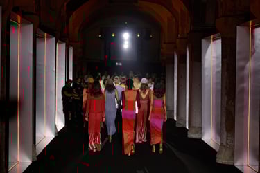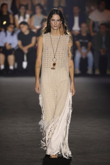 El desfile, que abrió oficialmente la 080 Barcelona Fashion, comenzó con una danza espiritual en homenaje al anterior CEO, Bernat Biosca, fallecido el pasado junio. Un gesto emotivo que impregnó de sensibilidad y respeto cada instante de la presentación.