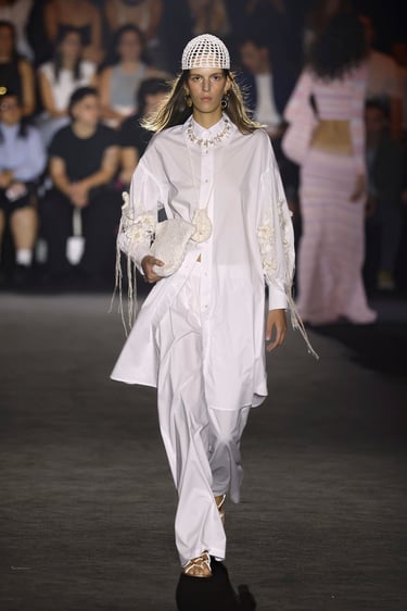 Cada prenda cuenta una historia. Flecos, bordados florales, trenzados o aplicaciones en ganchillo reinterpretan el espíritu setentero desde una perspectiva moderna y femenina. Raya consigue que lo artesanal no sea un recurso estético, sino un lenguaje emocional que conecta a la mujer con su esencia.