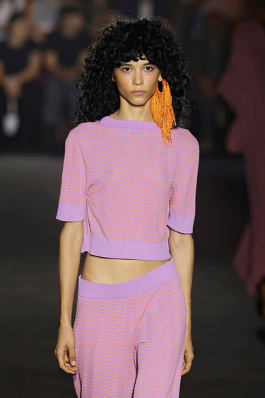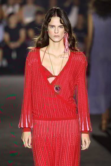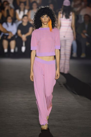 El jersey icónico vuelve a ser protagonista, esta vez más liviano y femenino, con escotes suaves, mangas amplias y una caída que acompaña el movimiento natural del cuerpo.