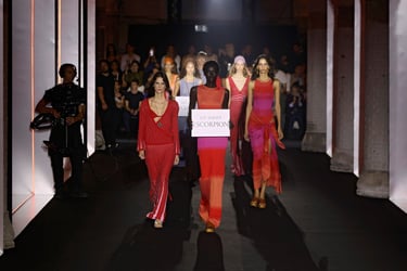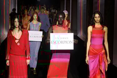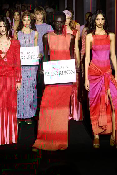 El carrusel final cerró el desfile con un gesto de homenaje: las modelos portaron uno de los míticos carteles de la marca, donde se podía leer “Un jersey Escorpion”. Una frase que resume casi un siglo de historia y reafirma la esencia de la firma.