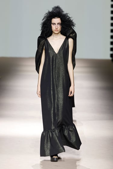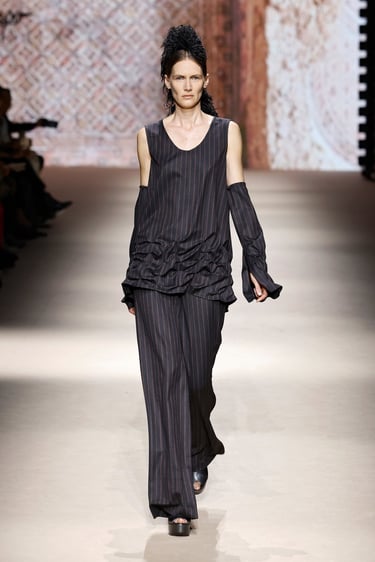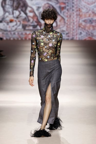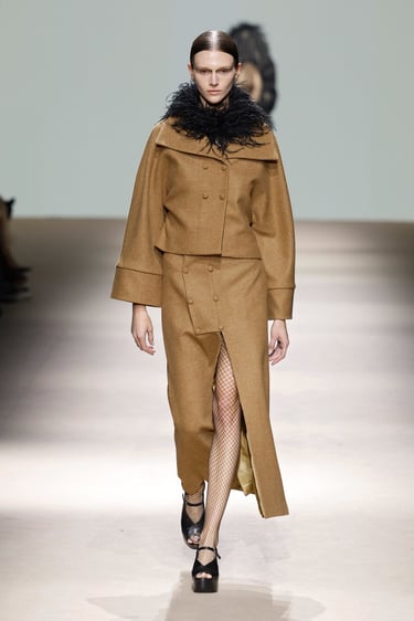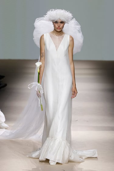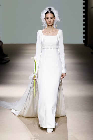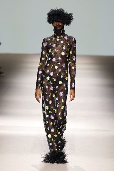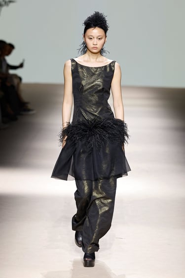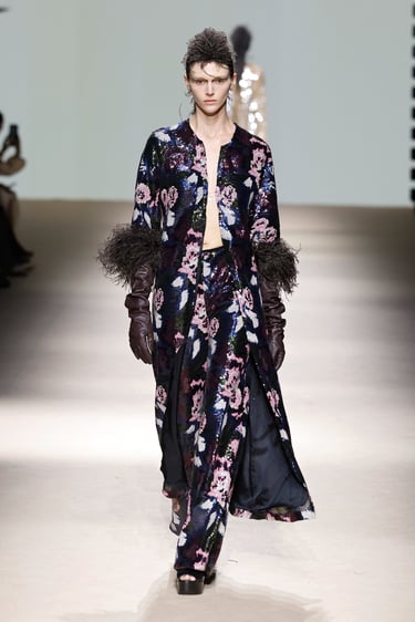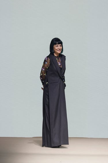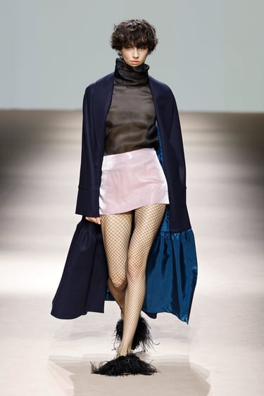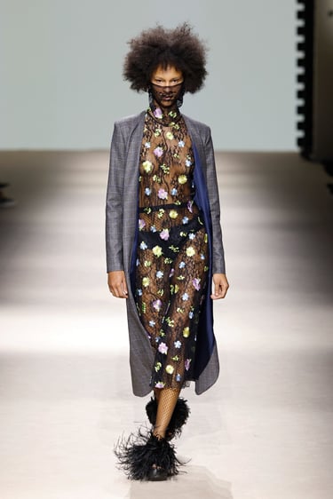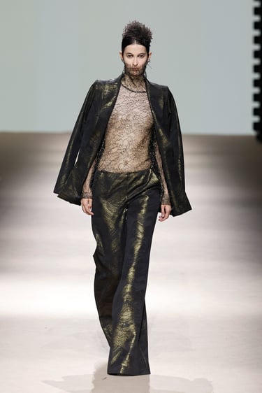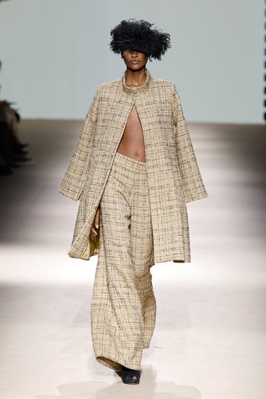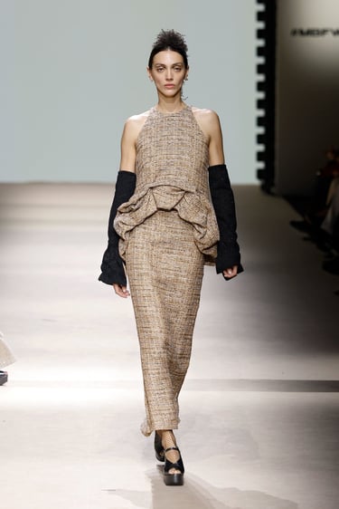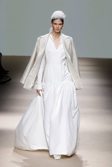 Su propuesta para Otoño/Invierno 2026-2027 se articula como un ejercicio de equilibrio entre tradición y modernidad, donde el lenguaje textil se convierte en el gran protagonista. Fiel a su ADN, Campo construye una colección donde los materiales no solo visten, sino que narran. El satén de acabado luminoso se enfrenta con naturalidad al carácter más estructurado del tweed, mientras la lana fría aporta rigor y los tules bordados introducen una dimensión etérea, casi emocional. Este juego de contrastes tan reconocible en su universo creativo eleva cada look a una experiencia sensorial.