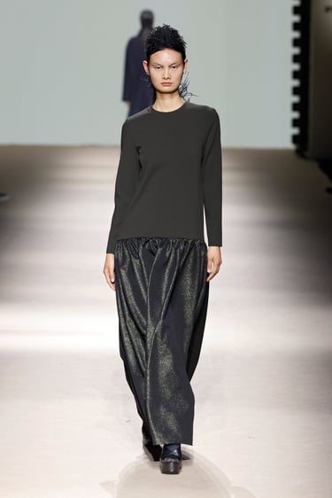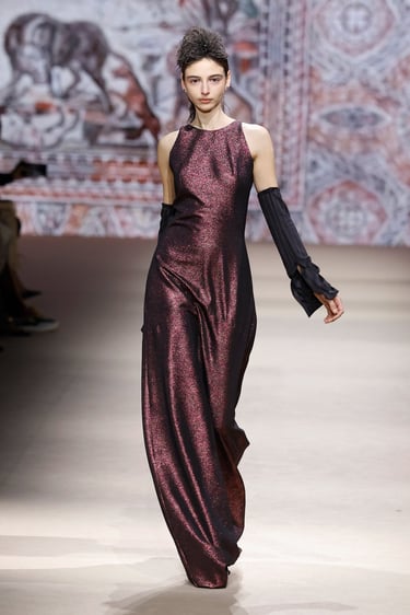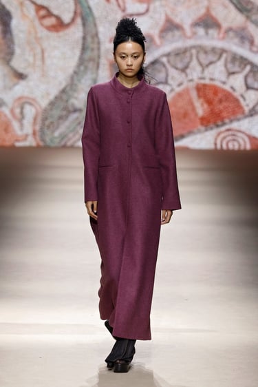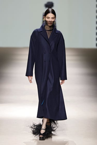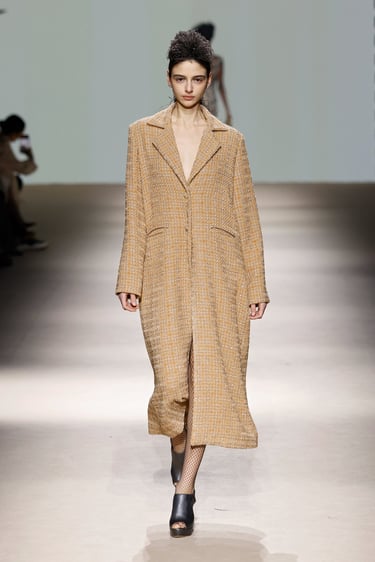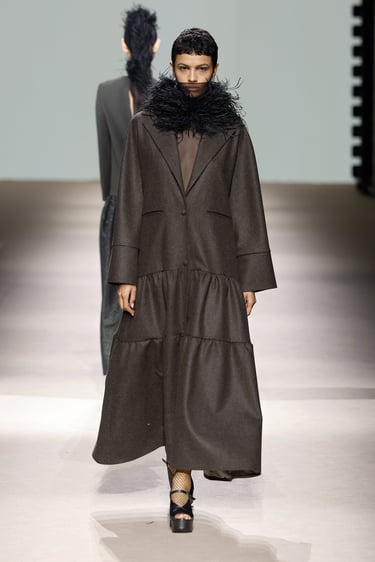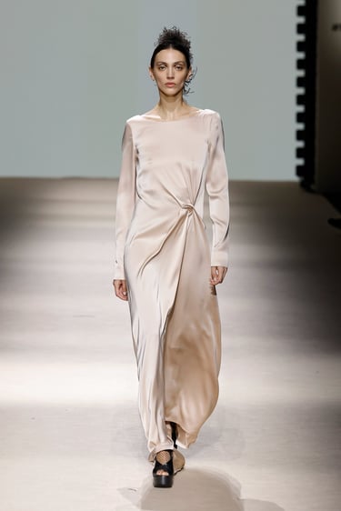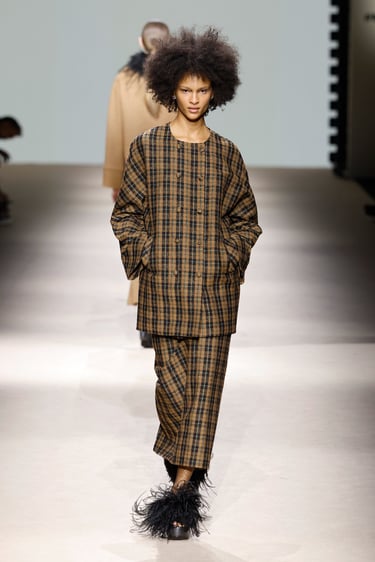 Las siluetas, depuradas pero nunca rígidas, responden a una mujer que exige funcionalidad sin renunciar a la belleza. Abrigos envolventes, de líneas limpias y vocación protectora, marcan el inicio de un desfile que evoluciona hacia vestidos y conjuntos versátiles, concebidos para transitar con fluidez entre distintos momentos del día. En este sentido, el prêt-à-porter de Campo se aleja de lo efímero para instalarse en una idea de permanencia: piezas que se adaptan, que acompañan, que permanecen.
