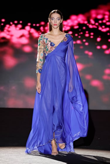 Hannibal Laguna no se limita a vestir; crea espacios visuales donde la belleza comparte escenario con la costura, donde el savoir-faire se siente y se vive. Lazuliflow lo demuestra: es una colección que nos recuerda que la moda de verdad tiene alma, memoria y fuerza. Y que vestir bien —con autenticidad, con elegancia— sigue siendo un acto de dignidad y celebración.