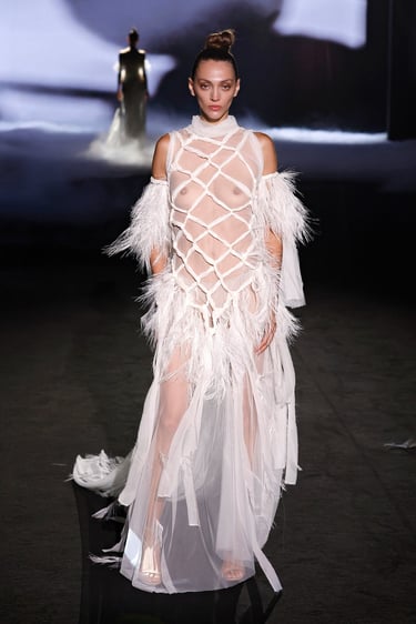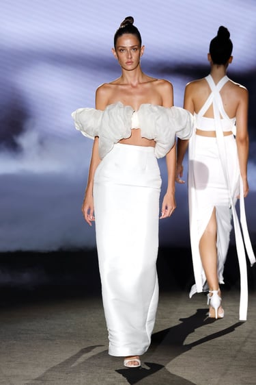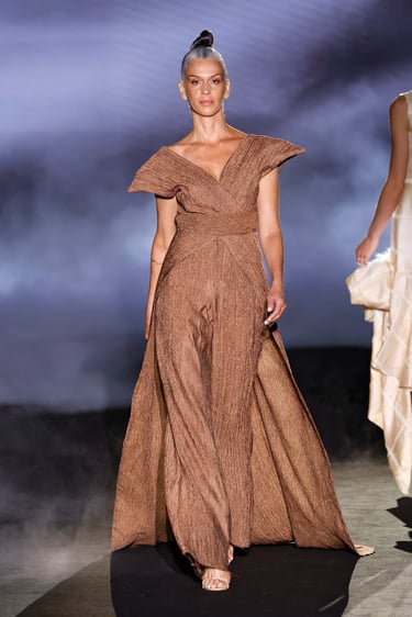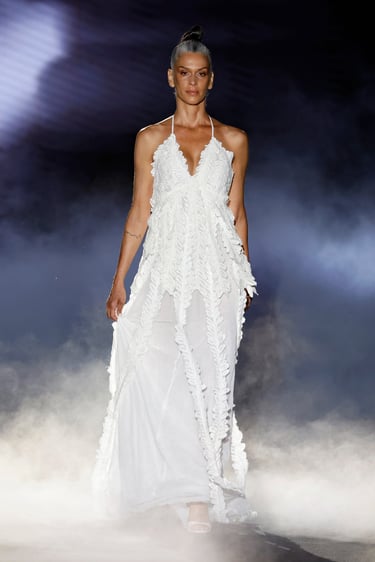 Cada pieza interpreta movimiento y emoción convirtiendo así la pasarela en un escenario de liberación y de renacer. Cada diseño es una interpretación, un estallido de liberación que rompe barreras y celebra la autenticidad.