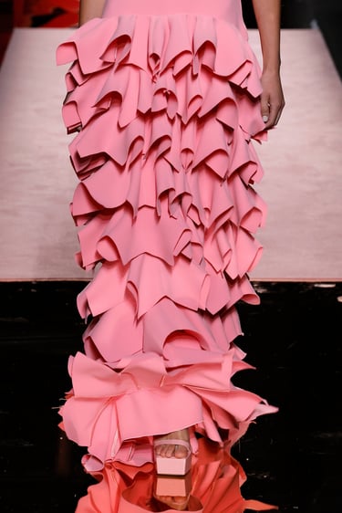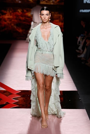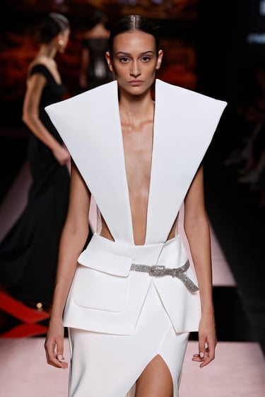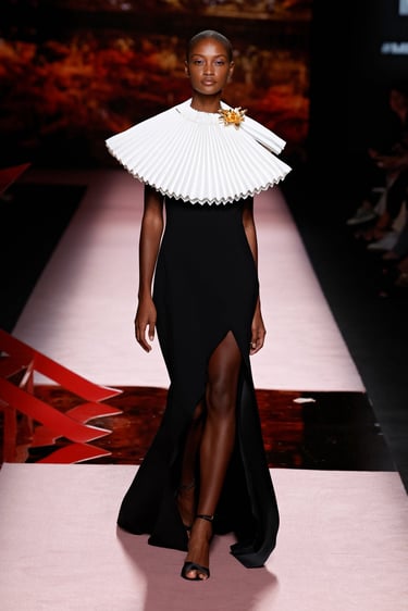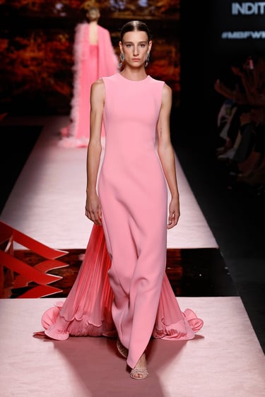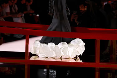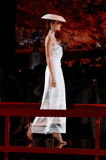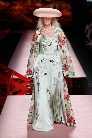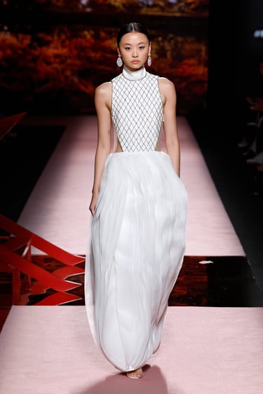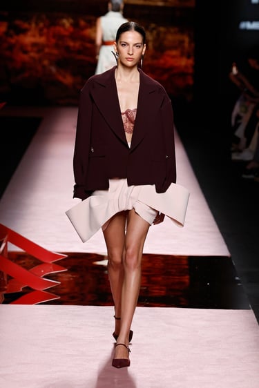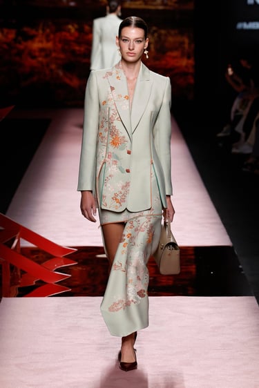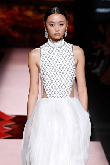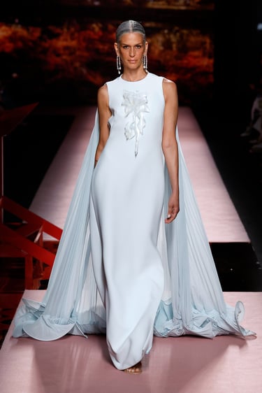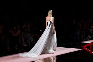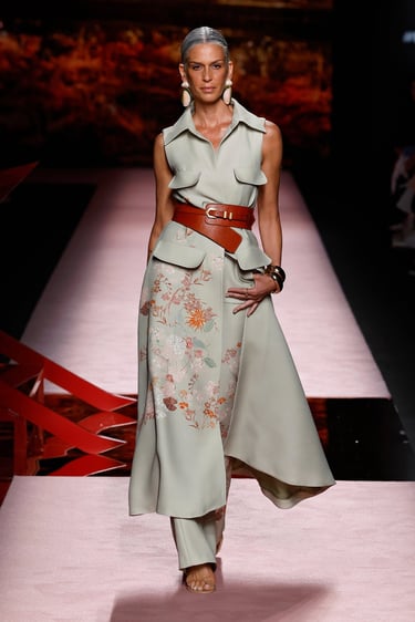 El desfile brillo por su delicadeza y fuerza a partes iguales. Inspirada en la arquitectura y los jardines clásicos, la cromática fue desde los tonos neutros y pastel hasta los más vibrantes, logrando un equilibrio perfecto entre sobriedad y frescura. Las siluetas fluidas, y a la vez estructuradas al mismo tiempo, realzan la feminidad sin perder funcionalidad, mostrando que el lujo puede ser contemporáneo.