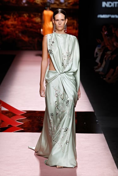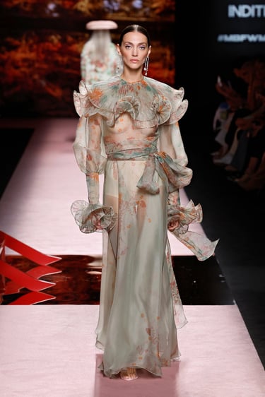 La diseñadora valenciana Isabel Sanchis presento en la Mercedes Benz Fashion Week Madrid una colección que fusiona la tradición artesanal con la modernidad más sofisticada. Su desfile, un recorrido por la elegancia femenina, destaco por la exquisitez de los tejidos, la precisión de los cortes y la delicadez de los detalles.