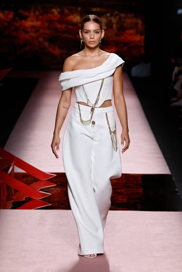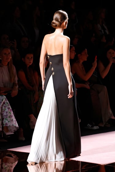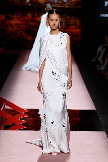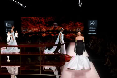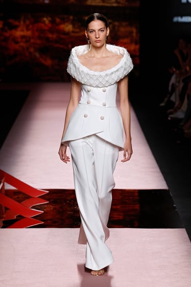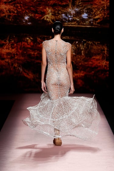 Los vestidos , de corte impecable, y con bordados minuciosos , los abrigos ligeros y de líneas depuradas y los accesorios que añadían aun mas sofisticación, acompañados de peinados minimalistas y un maquillaje natural. Esta colección no solo es moda, es un homenaje a la mujer que no teme brillar, que juega con las tendencias sin perder su esencia y que reivindica la belleza como forma de expresión personal.