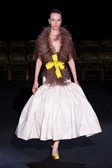 4. Volúmenes contenidos pero pensados: la silueta femenina se sugiere sin agresividad, la arquitectura de la prenda se articula con cortes sutiles, sin perder ligereza ni movimiento.