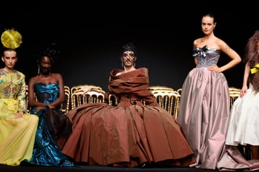 Guillermo Díez López —más conocido como Guillermo Décimo— proviene de Burgos y se ha forjado en talleres de prestigio como los de Ulises Mérida, Ana Locking y, más tarde, con Javier Martín Galán en el Museo Balenciaga. Esta formación le ha permitido cultivar un universo en el que tradición y experimentación coexisten. En su perfil oficial se describe con precisión: “su universo combina tradición, artesanía y belleza atemporal” y resalta que, como diseñador, patronista y modista, él “crea todos los diseños de principio a fin con sus propias manos”.
