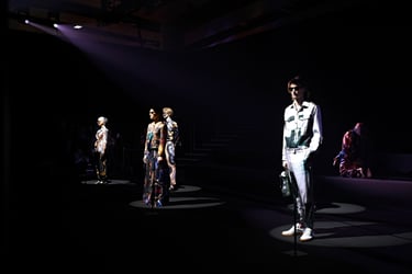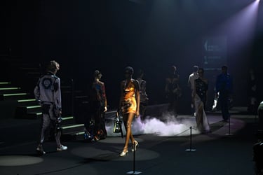 El inicio fue silencioso: las modelos permanecieron inmóviles bajo la luz tenue, mientras un piano sonaba en directo y el público se acercaba con cautela. Luego emergió la soprano Judith Pezoa, que comenzó a cantar, y las modelos giraron en cámara lenta hasta quedar frente al público. Esta coreografía pausada y contenida transformó la pasarela en un espacio de introspección: cada quien podía detenerse, mirar, casi tocar.