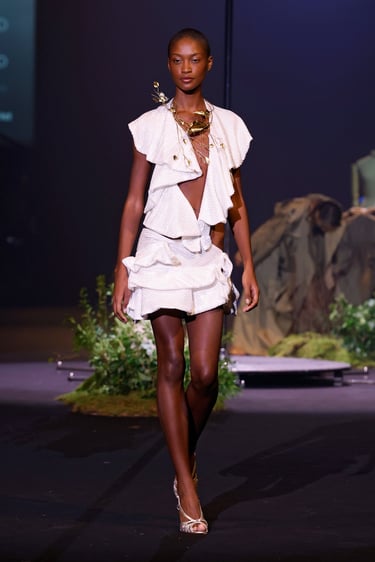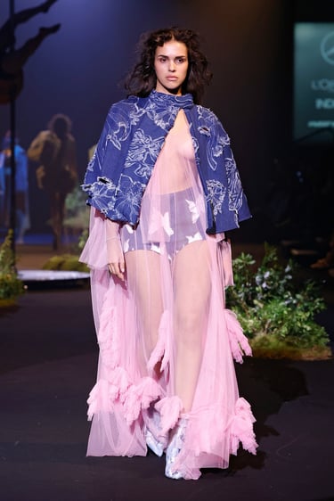 En esa pasarela, la moda dejó de ser vestimenta para volverse discurso. Lafuente empieza desde el gesto poético, desde la reflexión —qué significa vestir hoy, cómo las prendas pueden hablar de cambio—. Su colección no se limita al objeto, convoca al espectador a mirar, a pensar y a repensar.