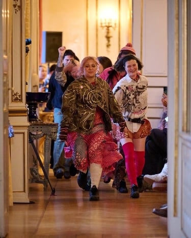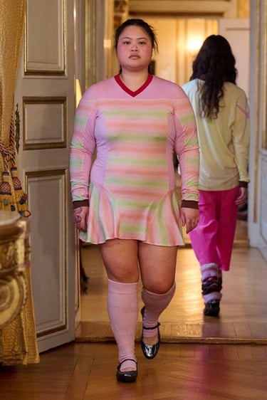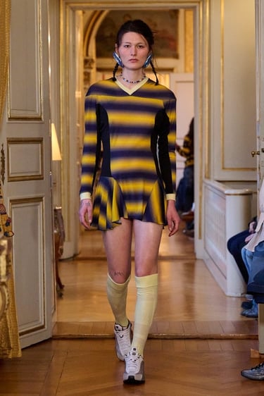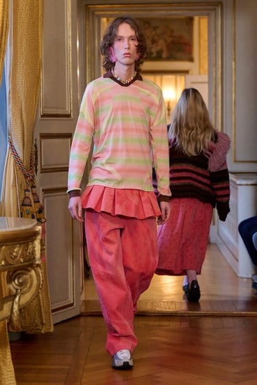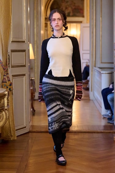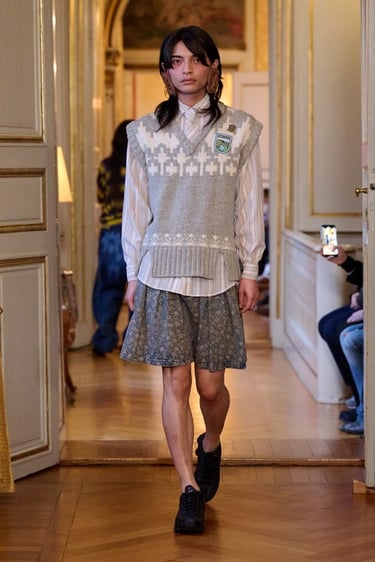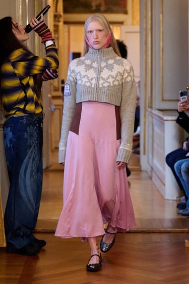 Para esta temporada, Paolina Russo viaja simbólicamente a Copenhague y transforma la pasarela en una celebración de los viajes escolares al extranjero, evocando ese momento vital en el que todo parece nuevo, posible y emocionante. La colección captura la esencia de la primera vez: la primera escultura contemplada, la primera ciudad desconocida recorrida, el primer idioma balbuceado entre museos y calles frías.