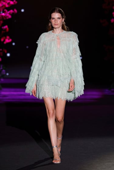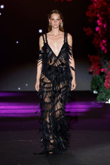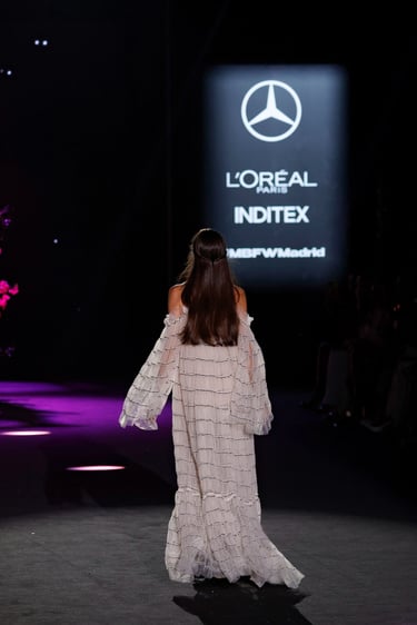 La aparición de Carla Hinojosa, musa y cómplice creativa de la diseñadora, inauguró y clausuró el desfile, aportando frescura y cercanía. Su presencia confirmó la voluntad de la firma de conectar con una mujer contemporánea: segura, atrevida, capaz de habitar el lujo sin solemnidad.