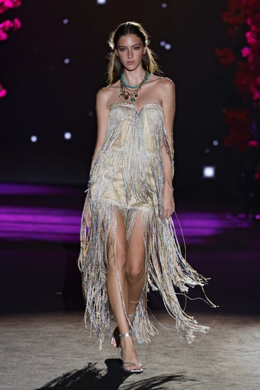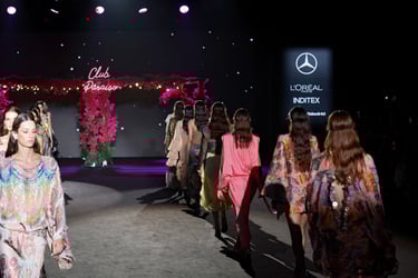 En la última edición de Mercedes-Benz Fashion Week Madrid, Odette Álvarez celebró los quince años de su firma con “Paraíso”, una colección primavera/verano 2026 que trasciende lo textil para convertirse en atmósfera. Un club imaginario, un escenario onírico y una estética que convierte cada prenda en invitación al verano eterno.