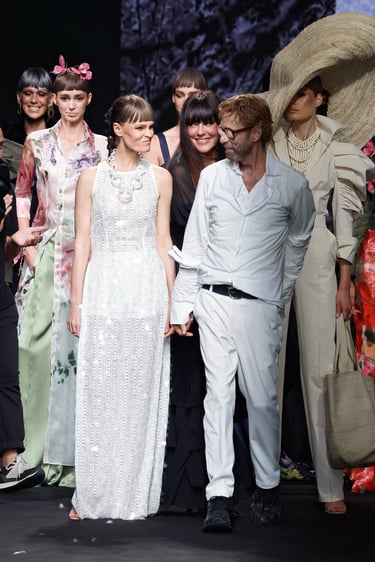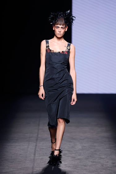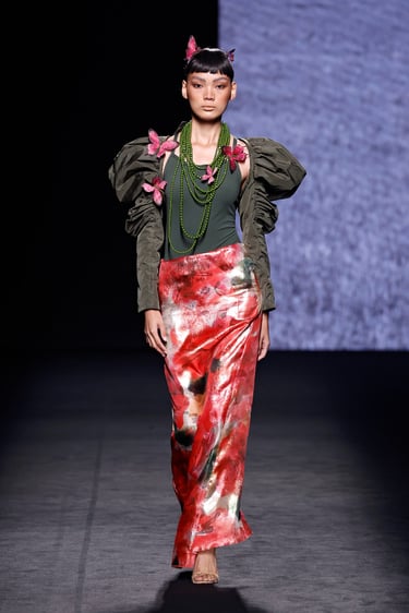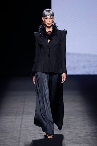 Lo que vemos en la pasarela es más que moda: es una narrativa en movimiento. Es la idea de que cada mujer es artista de sí misma, que puede vestir con intención, que cada pieza puede ser un símbolo cargado de significado.